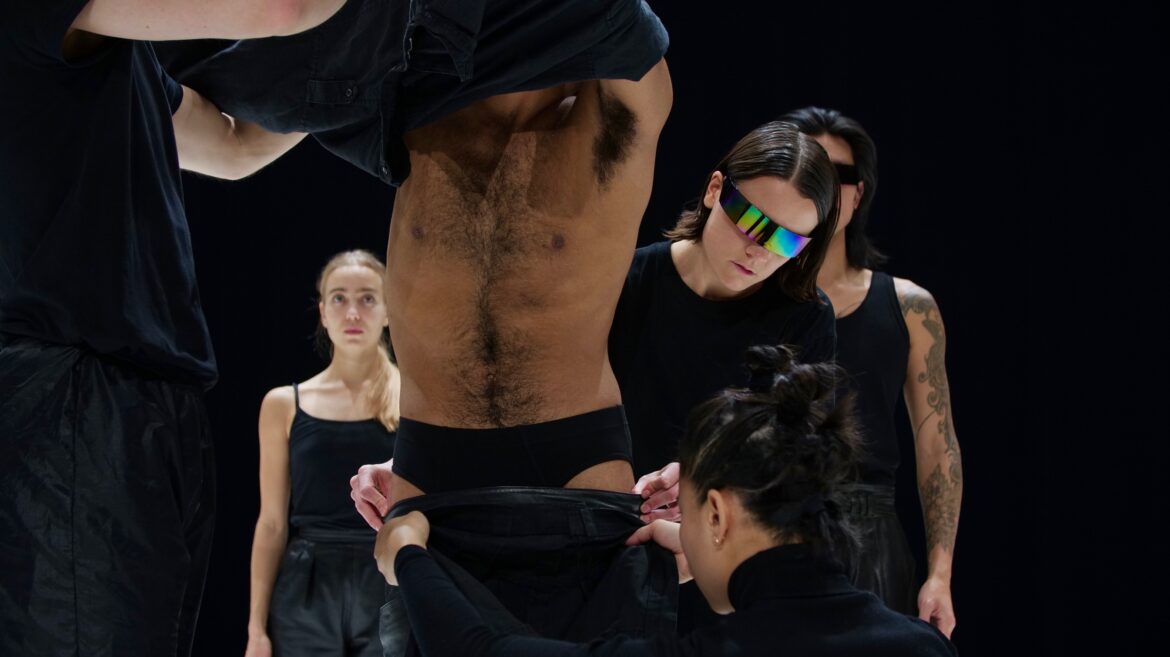 Qui sont-ces individus ? Des humains, des robots, des extraterrestres ? Quand on croit avoir la réponse, ils s’échappent dans une autre direction à travers une gestuelle qui se modifie de manière imperceptible ou complètement inattendue. Ces identités floues, mouvantes, oscillent entre des gestes souples, déliés, parfois tendres, et des mouvements d’automates tels qu’on pouvait déjà les voir dans « ZEMENT, the solo » ou SIEBEN.