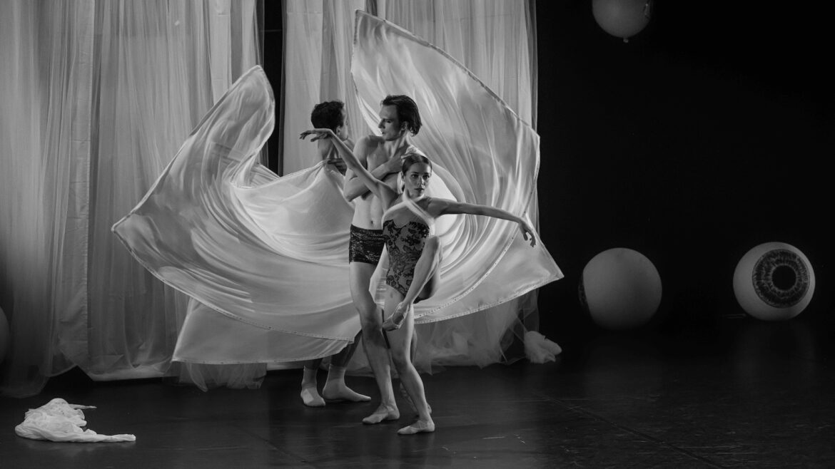 Son Don Juan passe à la vitesse supérieure avec 11 danseurs sur scène, qui pour la plupart n’avaient jamais travaillé ensemble. L’alchimie fonctionne, signe du professionnalisme des interprètes qui ont eu moins de cinq semaines pour assembler ce ballet néo-classique aux accents contemporains. La pièce interroge en filigrane la mise en scène de soi et l’hédonisme dans l’environnement voyeuriste des réseaux sociaux – matérialisés par d’énormes yeux suspendus au-dessus de la scène.